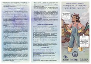 O material traz orientações sobre como evitar o aparecimento de vetores e pragas urbanas, e melhores processos de sanitização dos ambientes e utensílios expostos pela água e lama contaminadas. Outro alerta que o encarte faz é sobre onde buscar informações. Em casos de enxurradas ou enchentes, é importante entrar em contato com as autoridades públicas da localidade atingida para obter orientações, principalmente em relação ao abastecimento de água e os cuidados com o aparecimento de agentes vetores de doenças, como leptospirose e hepatite.