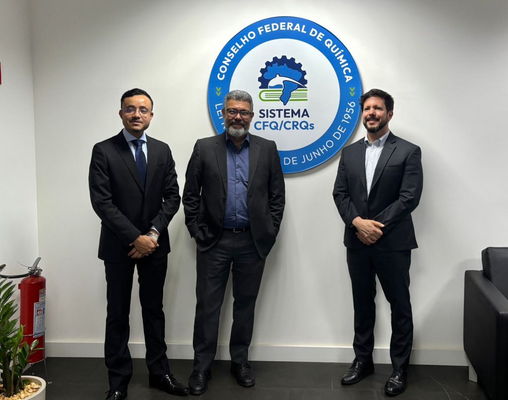 O conselheiro federal Ubiracir Fernandes Lima Filho, o coordenador químico Diego Freitas e o gerente-executivo Weverton Borges representaram o CFQ na reunião. Durante o encontro, foram discutidas estratégias para integrar a atuação das entidades e ampliar iniciativas voltadas ao desenvolvimento tecnológico e profissional do setor.