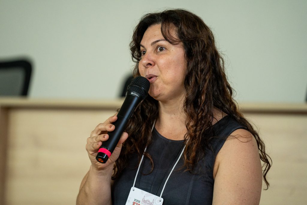 Ivanise Rizzatti iniciou a apresentação com uma análise crítica sobre a formação de professores. “Estamos realmente conectando nossas pesquisas com as necessidades da formação de professores?”, questionou. “Além disso, quem são os formadores de formadores? Muitos pesquisadores na área de ensino vêm de campos específicos e enfrentam um grande desafio ao fazer a transição para o ensino”, completou Rizzatti.