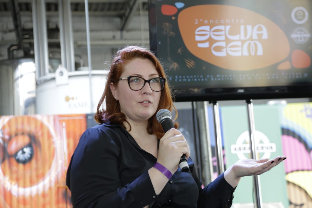 A terceira palestrante foi a profissional da Química e influenciadora do mercado de cervejas Gabriela Lando. Ela fez um discurso bastante tocante, remetendo ao juramento do químico e a importância de sua atividade dentro do chão de fábrica.