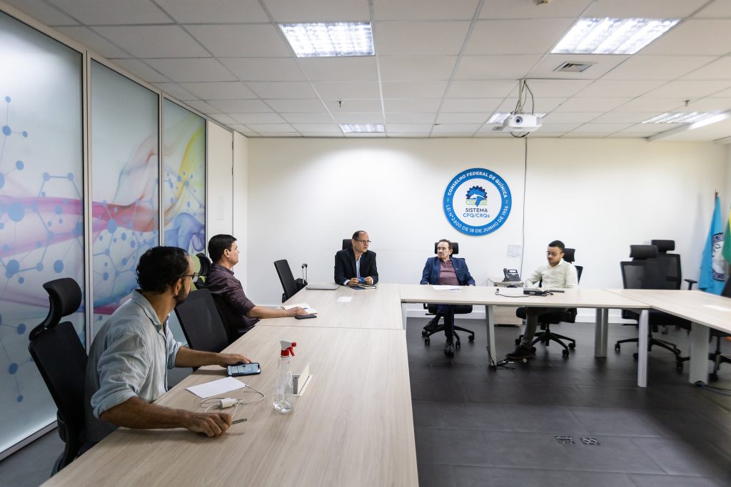 Participaram do encontro ainda a Chefe da Assessoria de Comunicação do CFQ, Jordana Saldanha, o Assessor de Relações Institucionais e Governamentais, Antonio Lannes, e o gerente-executivo do CFQ, Weverton Borges.