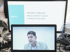 O novo Plano Diretor de Tecnologia da Informação (PDTI) para o triênio 2022-2024 foi um dos temas desta segunda-feira (27), à tarde, durante a Semana do Aprendizado. O gerente de Tecnologia da Informação do Conselho Federal de Química (CFQ), Cristiano Ferreira, foi quem proferiu a palestra para os participantes do Sistema CFQ/CRQs.