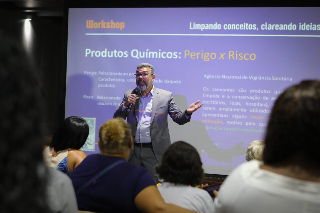 Em uma de suas falas, Ubiracir também abordou a importância da regulamentação desses materiais de limpeza. “A Agência Nacional de Vigilância Sanitária exige que todos os produtos de limpeza sejam regularizados antes de chegarem ao consumidor. Essa regulação é fundamental para garantir a segurança do uso desses produtos no dia a dia”, afirmou.