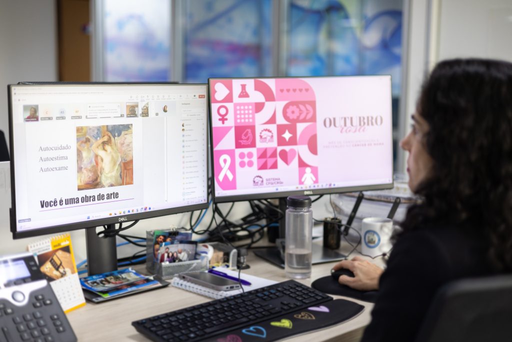 Na última quarta-feira (30), o Sistema CFQ/CRQs, por meio do Grupo de Trabalho “Mulher na Química”, promoveu a palestra “Outubro Rosa: câncer de mama e saúde da mulher”, conduzida pela Dra. Nara Fabiana da Cunha. A especialista abordou a importância do autocuidado e do diagnóstico precoce, ressaltando como o autoexame, a conscientização e a prevenção são essenciais para a saúde feminina.