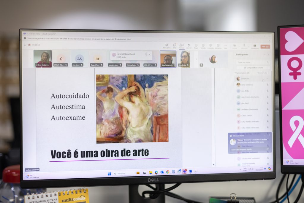 “O autoexame permite que a mulher se conheça. Um dos principais pontos que reforçamos é observar pequenas mudanças, como retração do mamilo, alterações de cor e forma. Estes são sinais sutis que podem fazer toda a diferença na identificação precoce”, orientou.