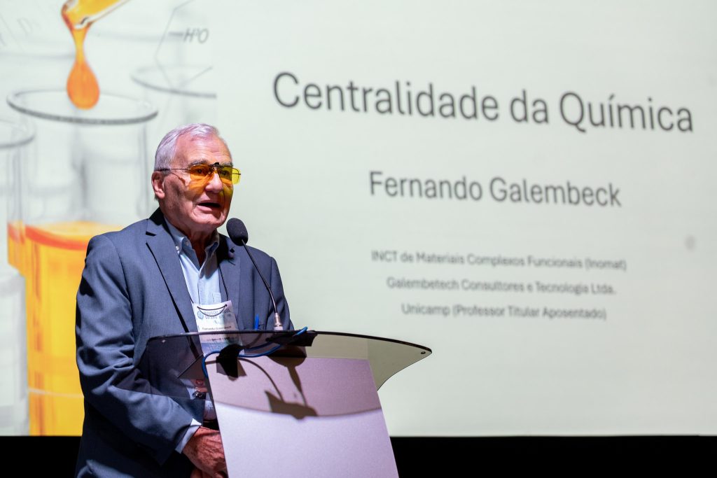 O segundo palestrante, o Químico Fernando Galembeck, professor da Universidade Estadual de Campinas (Unicamp), trouxe para os presentes a pauta “Soluções Revolucionárias para os Desafios Atuais: a Nova Química do Século 21”, onde permeou pontos importantes para a área no país e no mundo, como sustentabilidade, circularidade na produção e consumo, hidrogênio natural, uso da biomassa, gás carbônico como matéria-prima, entre outros.